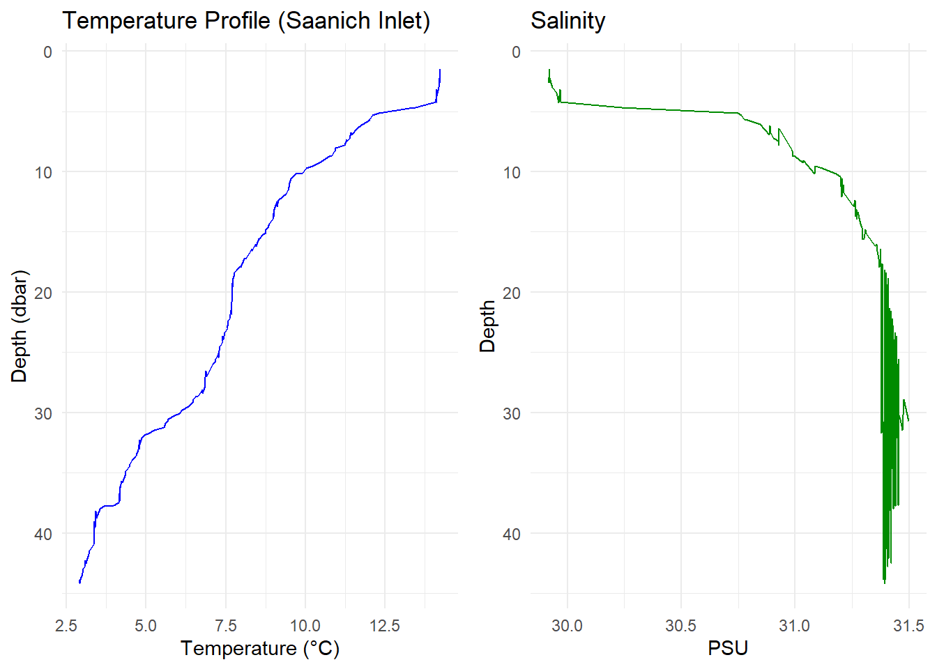 labs(title = "Salinity", x = "PSU", y = "Depth") +